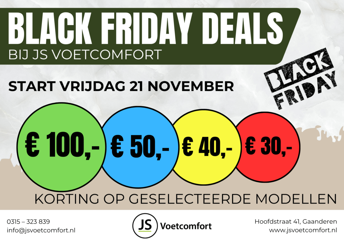 Vrijdag 21 november t/m zaterdag 29 november: Black Friday deals bij JS Voetcomfort in Gaanderen.