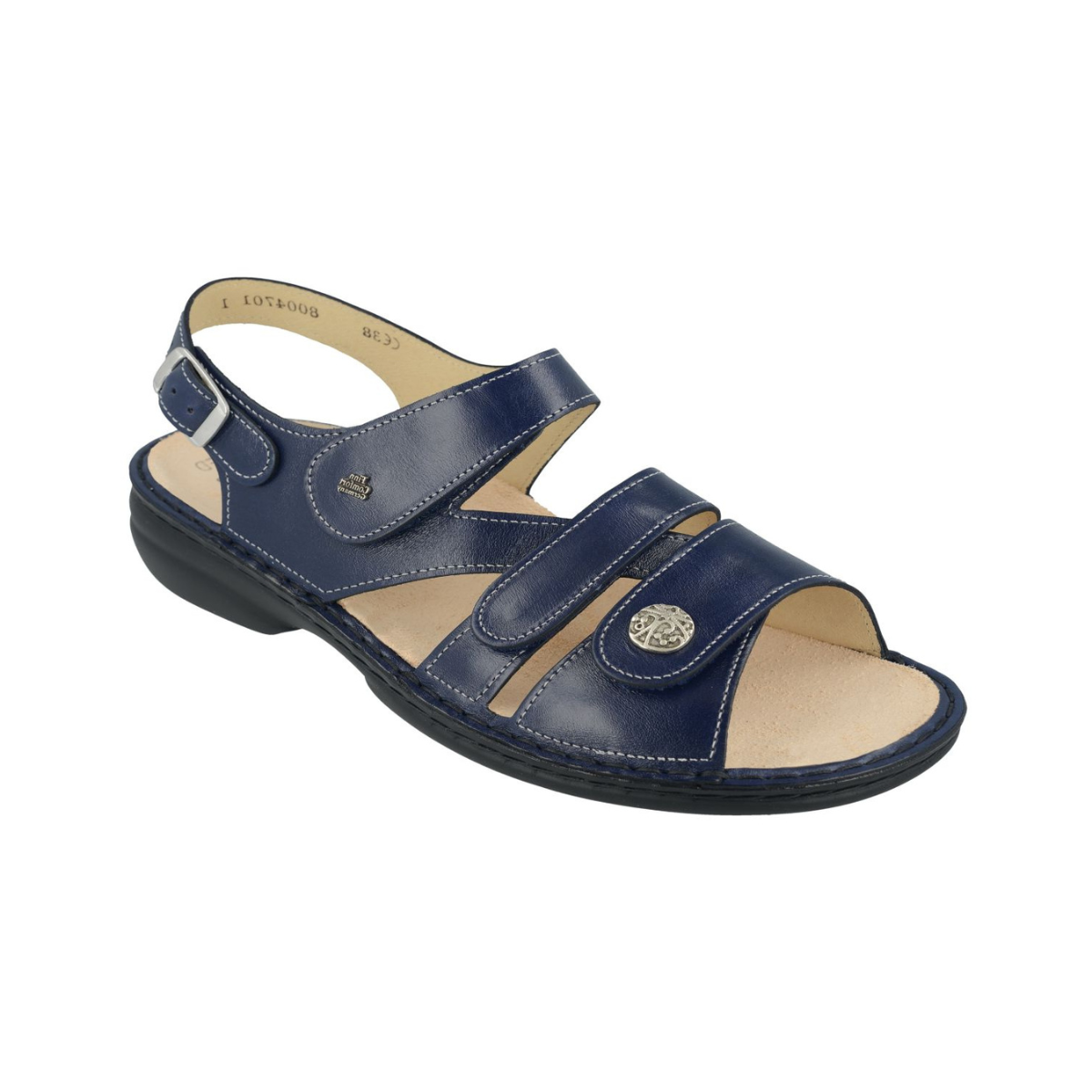 Voorzien van het zeer comfortabele Finn Comfort voetbed (uitneembaar). Geschikt voor een normaal tot iets breder voettype. Verstelbaar door middel van klittenbandsluitingen op 3 plaatsen op de wreef. Aan de achterkant tevens verstelbaar met gespsluiting.