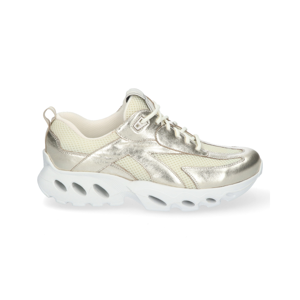 De unieke loopzool is voorzien van een cushioning effect. Maar toch is de loopzool stevig, een combinatie die ervoor zorgt dat de voet optimaal wordt ondersteund. Het voetbed is uitneembaar. Geschikt voor een eigen inleg- of steunzool.