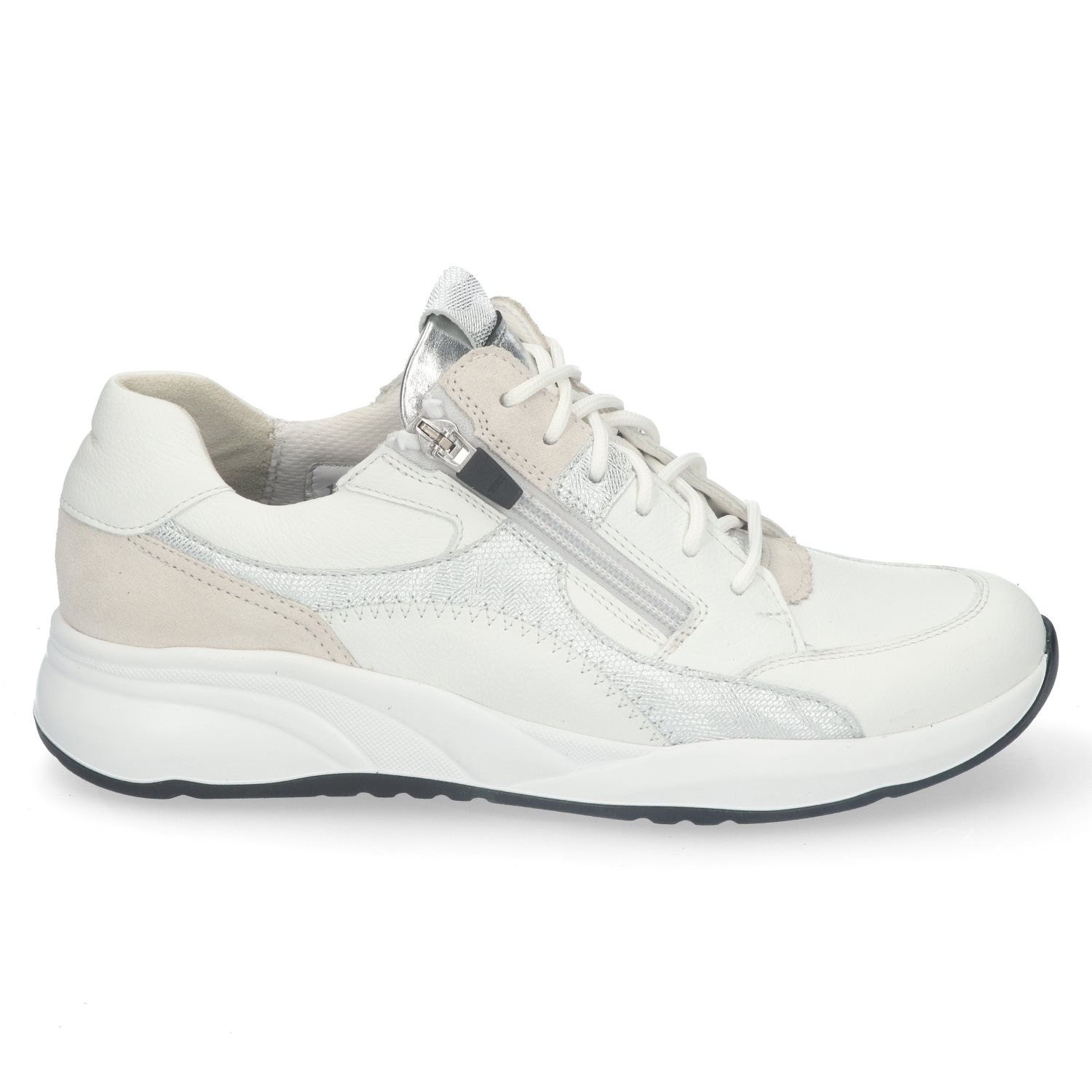 Deze Durea schoen is een comfortabele witte sneaker met een uitneembaar voetbed en voorzien van een ritssluiting aan de buitenzijde. Deze sneaker is gemaakt op een K-leest en is van mooi kwaliteit leer en het heeft een goede hielgrip.
